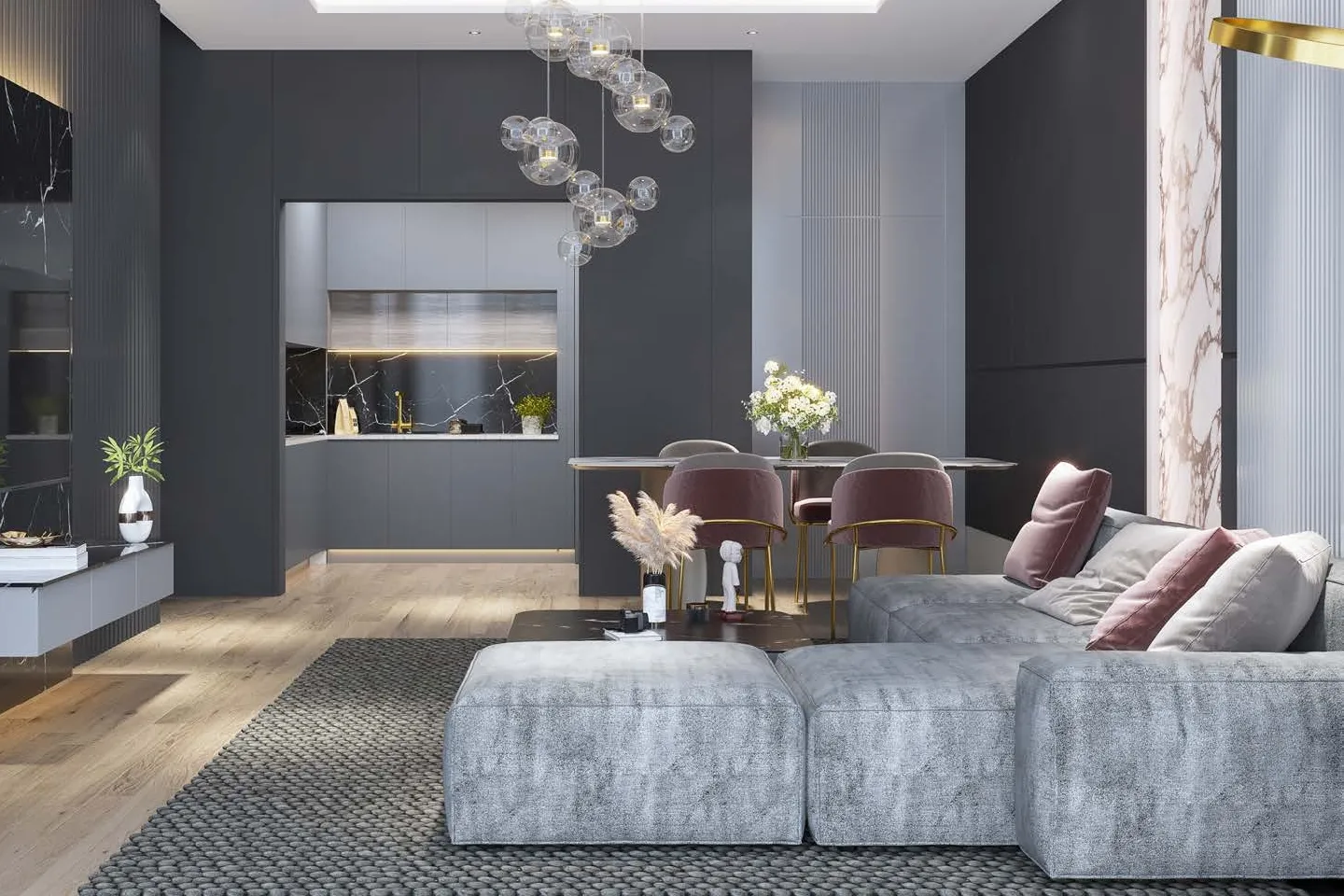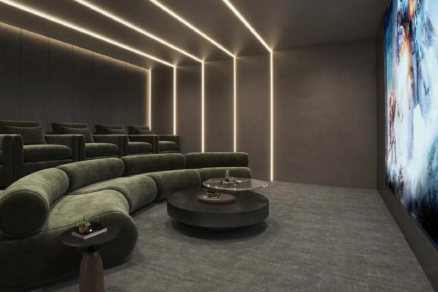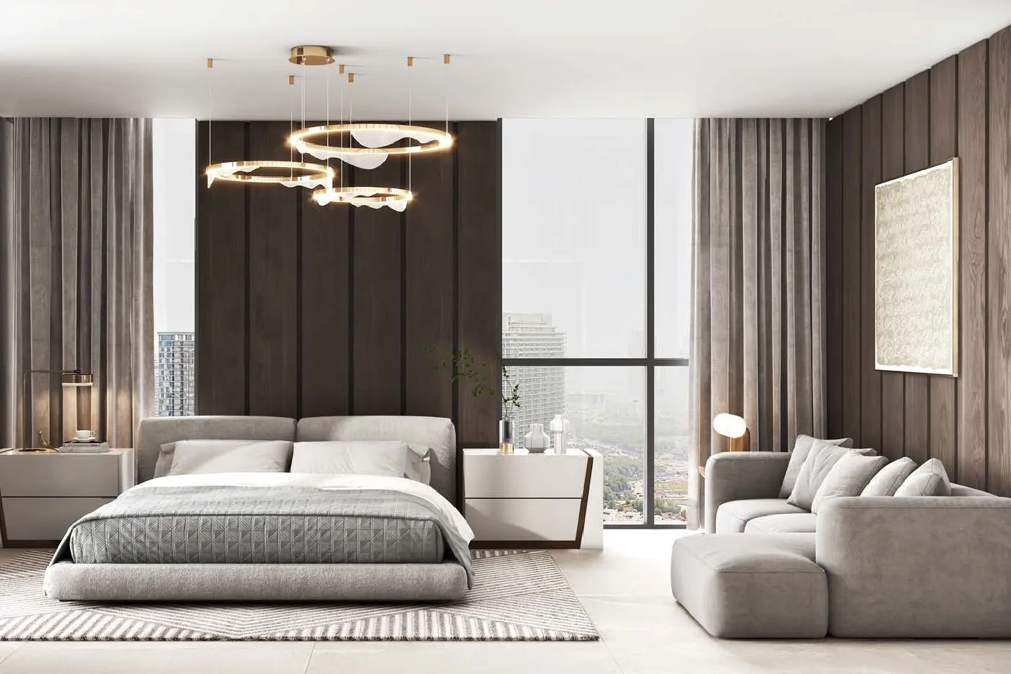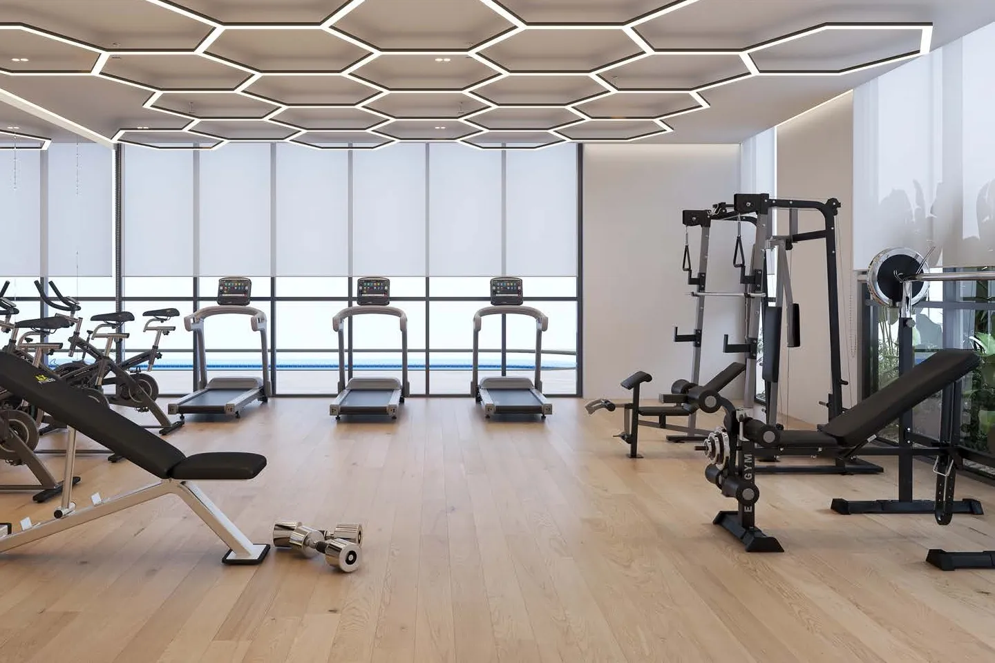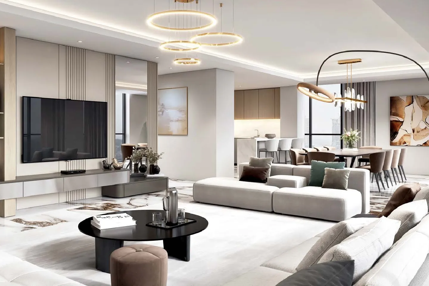 The project includes amenities such as a rooftop pool, gym, sauna, steam room, cinema, paddle court, BBQ area, meeting room, prayer hall, and 24/7 security. All units feature smart home systems and functional, clean interior layouts designed for comfortable living.